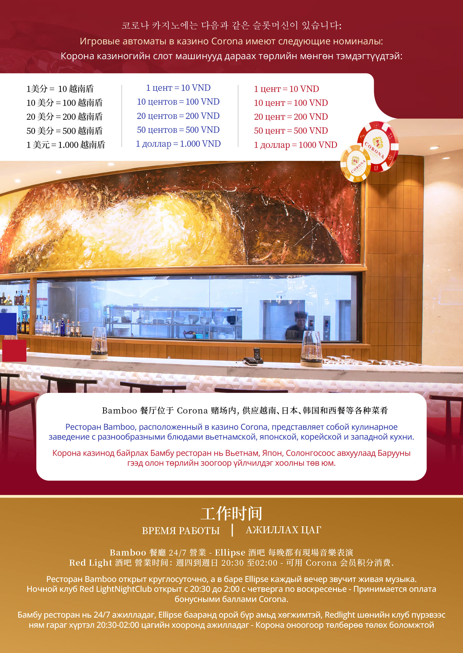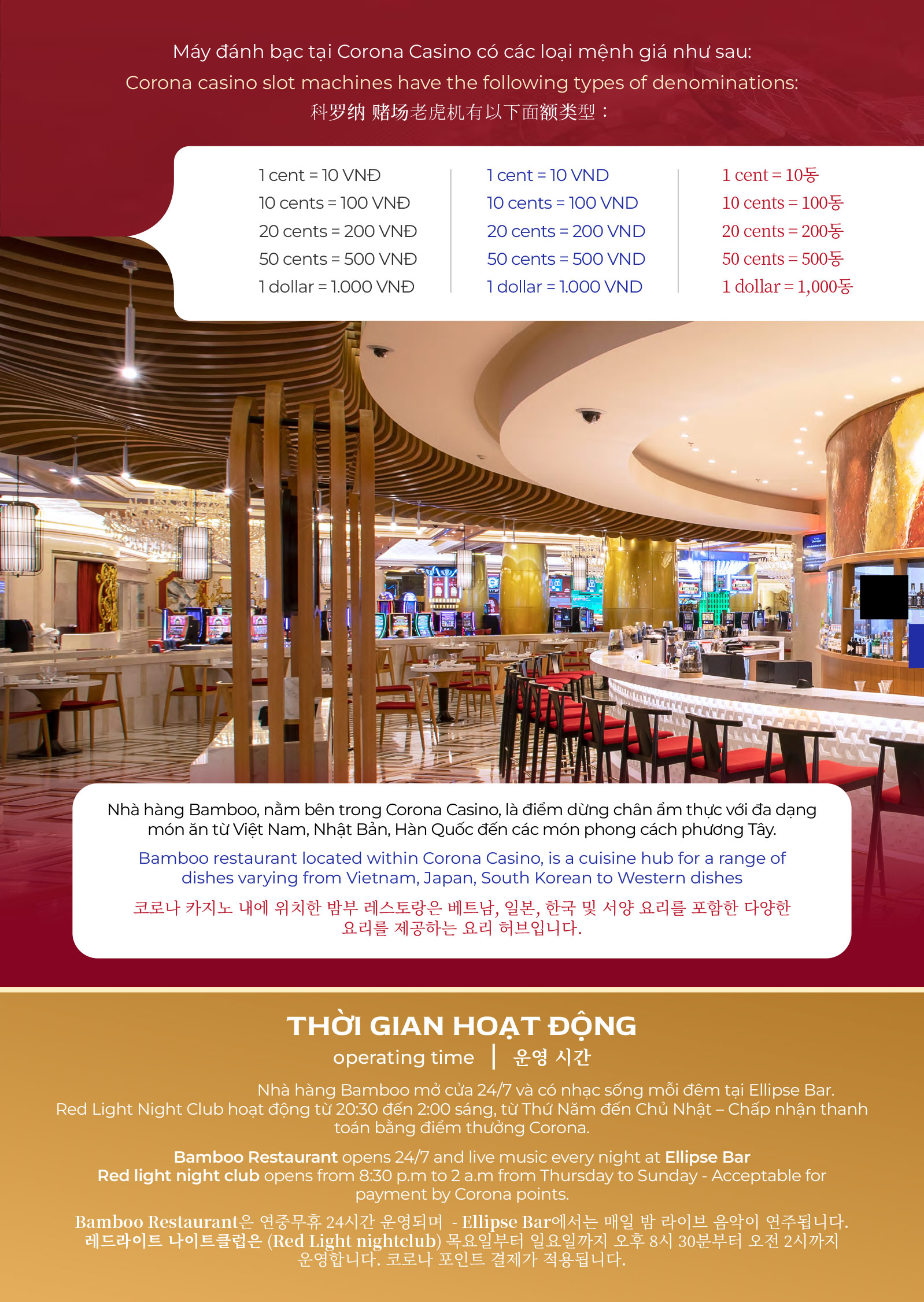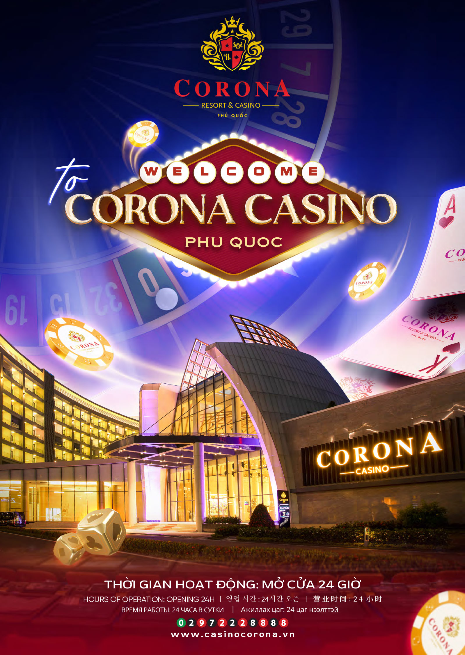 Mọi thắc mắc vui lòng liên hệ hotline +84 297 222 8888 hoặc email: mkt.management@casinocorona.vn để biết thêm chi tiết