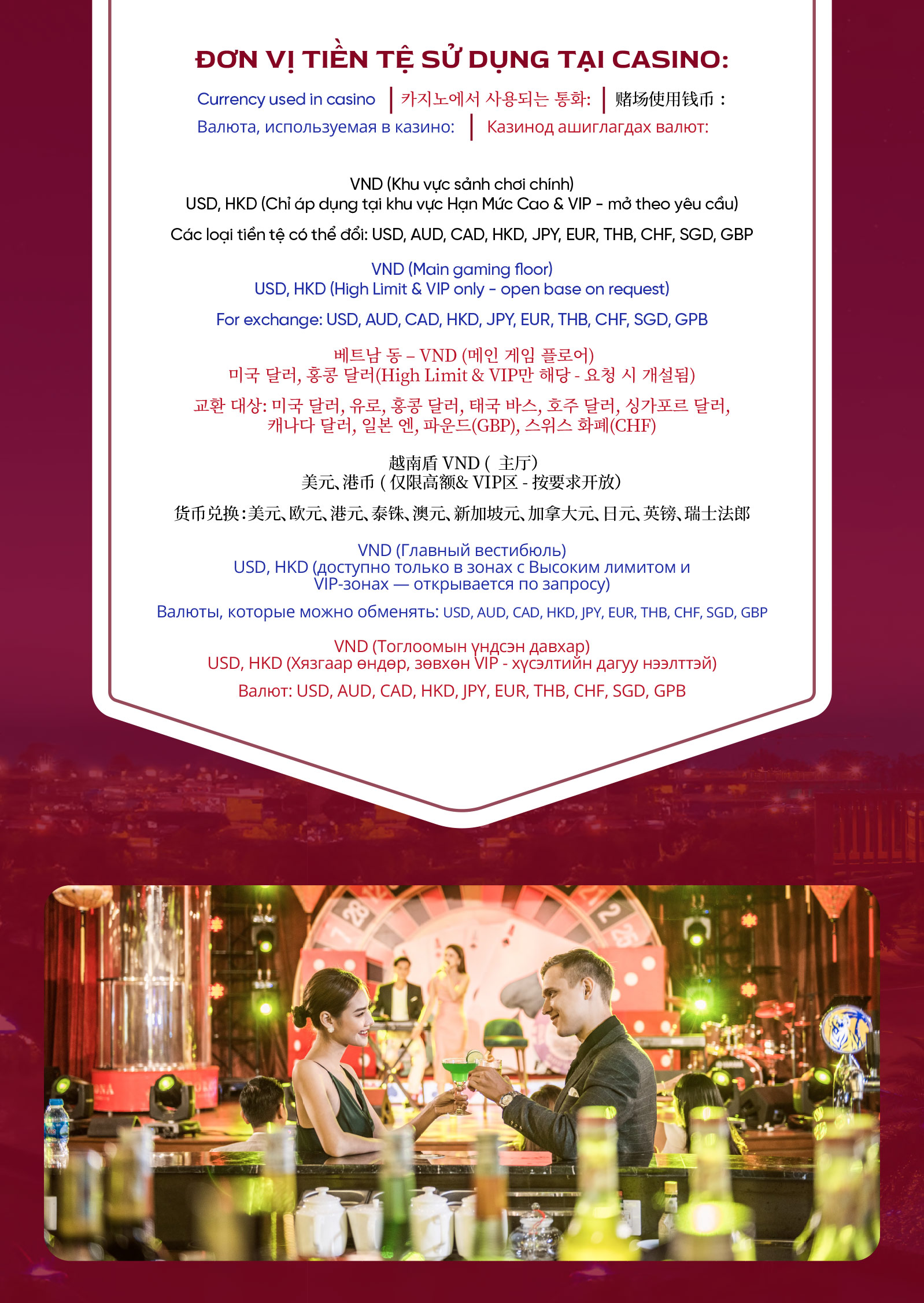 - Casino khuyến khích người chơi mặc trang phục lịch sự khi vào chơi.